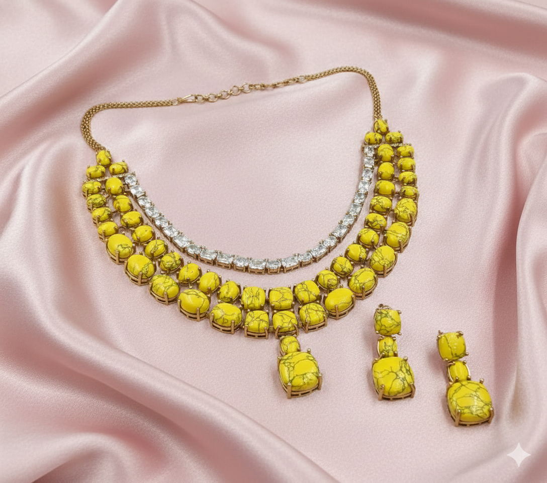 This minimalist set offers a fresh take on a classic motif. The pendant features a square-profiled rose spiral, meticulously set with shimmering white American Diamonds for a sophisticated, structured sparkle. It hangs from a delicate gold-plated chain, making it perfect for daily luxury