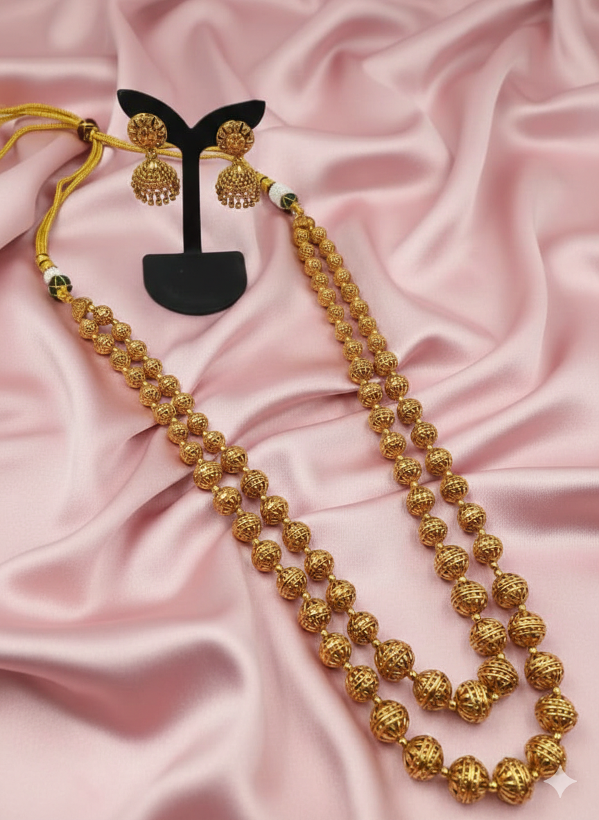 A delicate floral-inspired necklace featuring shimmering white American Diamonds (AD) on a polished gold-plated base with matching drop earrings.