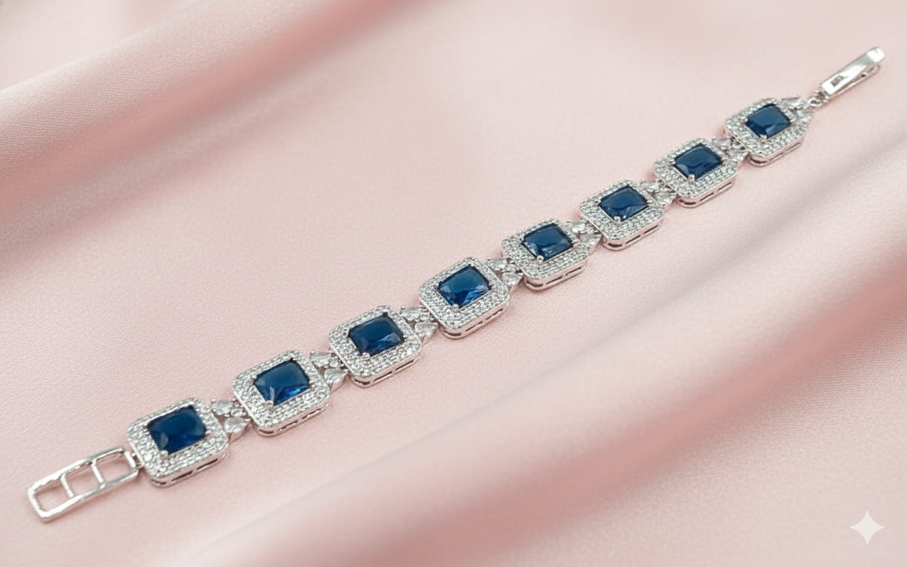 Elevate your jewelry collection with this exquisite AD (American Diamond) Bracelet. Designed for the modern woman who loves a blend of traditional elegance and contemporary style, this piece features: