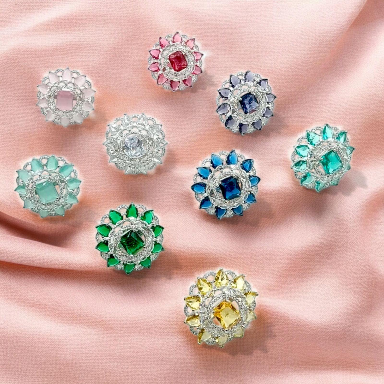 Crafted with high-quality American Diamonds on a gold-plated base, this ring delivers a perfect mix of elegance and versatility. Its adjustable design ensures a flawless fit for every finger, making it ideal for both daily wear and special occasions.