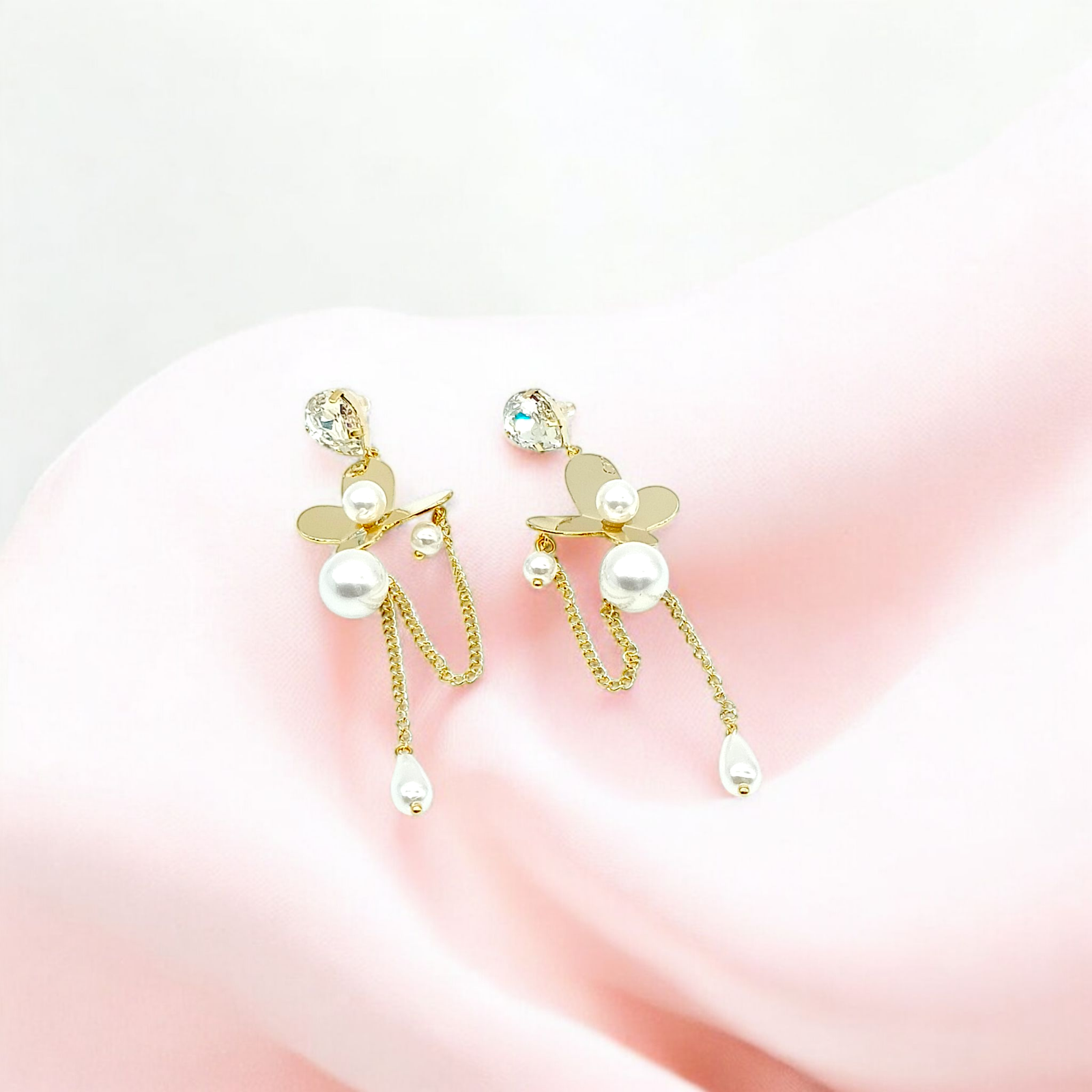 Elegant golden floral earrings crafted to add a touch of sparkle and grace to every look.