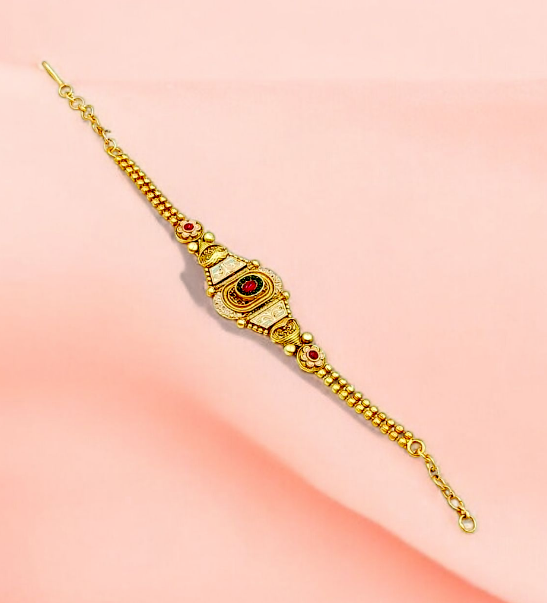 Step into elegance with this Golden-Ruby Bracelet from Paramount Jewels. Designed with a lustrous golden finish and highlighted with ruby accents, this bracelet exudes a royal charm that makes it perfect for special occasions.