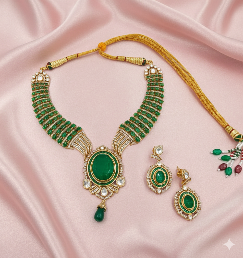 An ideal choice for bridal wear, festive occasions, and grand celebrations, this set is designed for those who appreciate bold colour, fine craftsmanship, and statement jewellery.