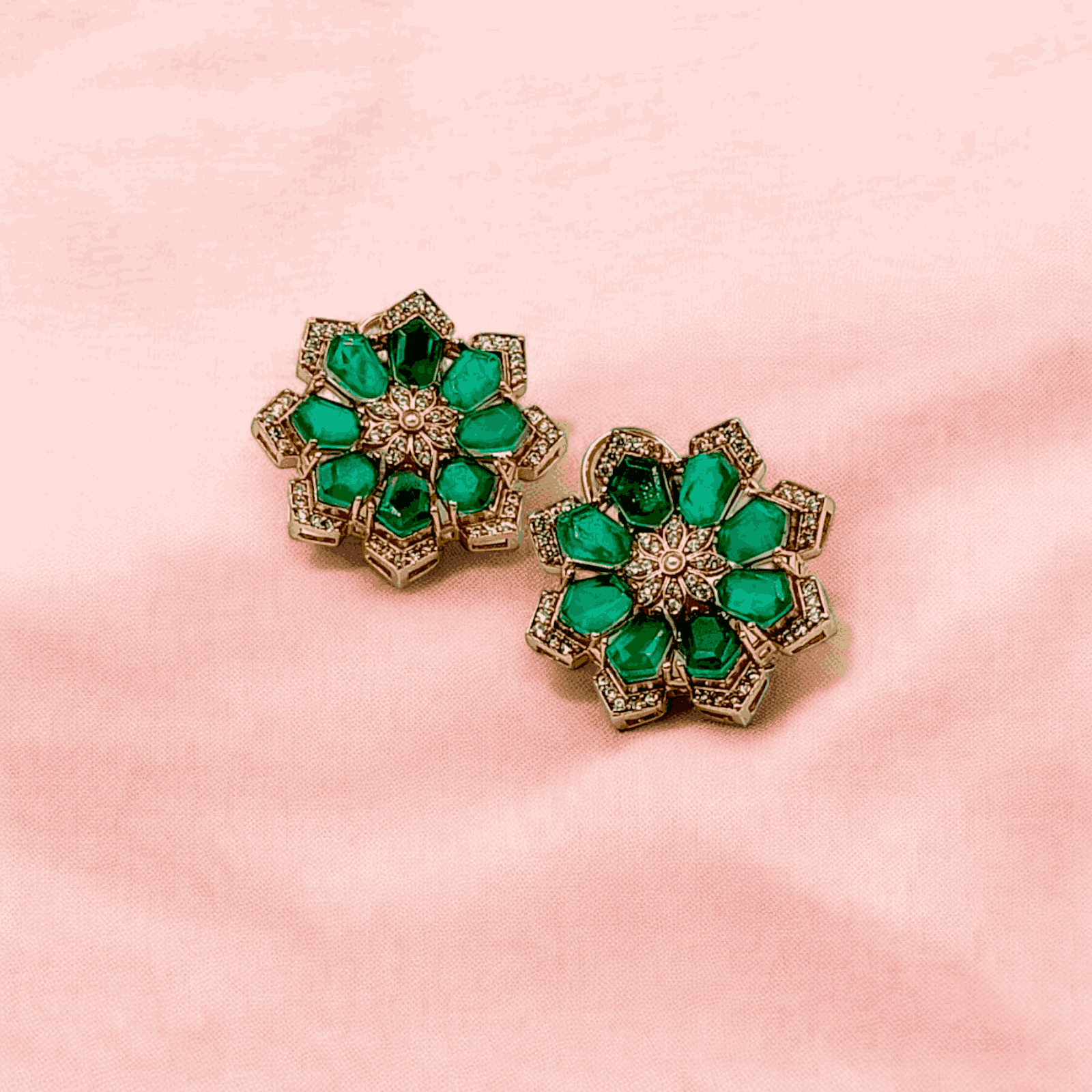 Add a touch of luxury to your look with these Green Moissanite Tops from Paramount Jewels.