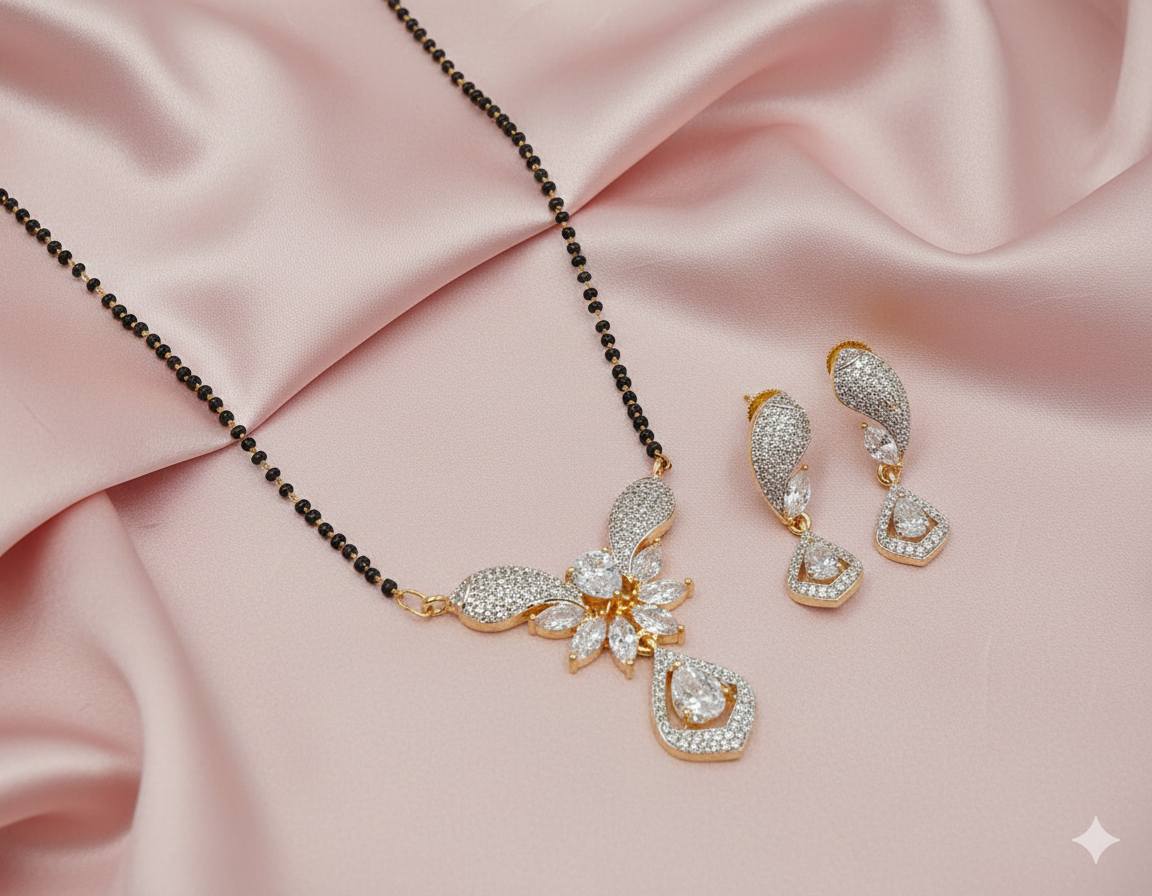 This stunning set showcases classical artistry with a series of graduated oval and leaf-shaped links. Each link is centered with a smooth ivory-white base, adorned with delicate golden floral patterns and a central sparkling crystal. The design is finished with a dense fringe of golden beads, creating a rhythmic and regal look.