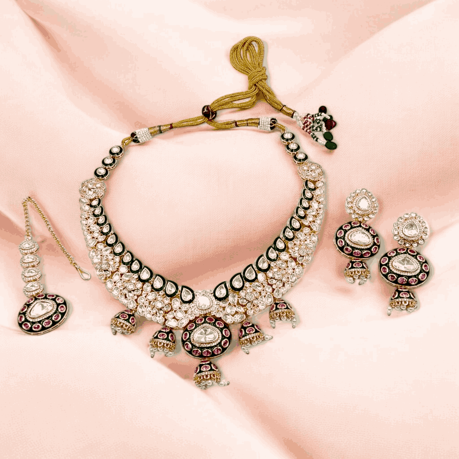 Designed with premium Kundan stones in vibrant hues, this exquisite piece reflects heritage artistry and modern charm.