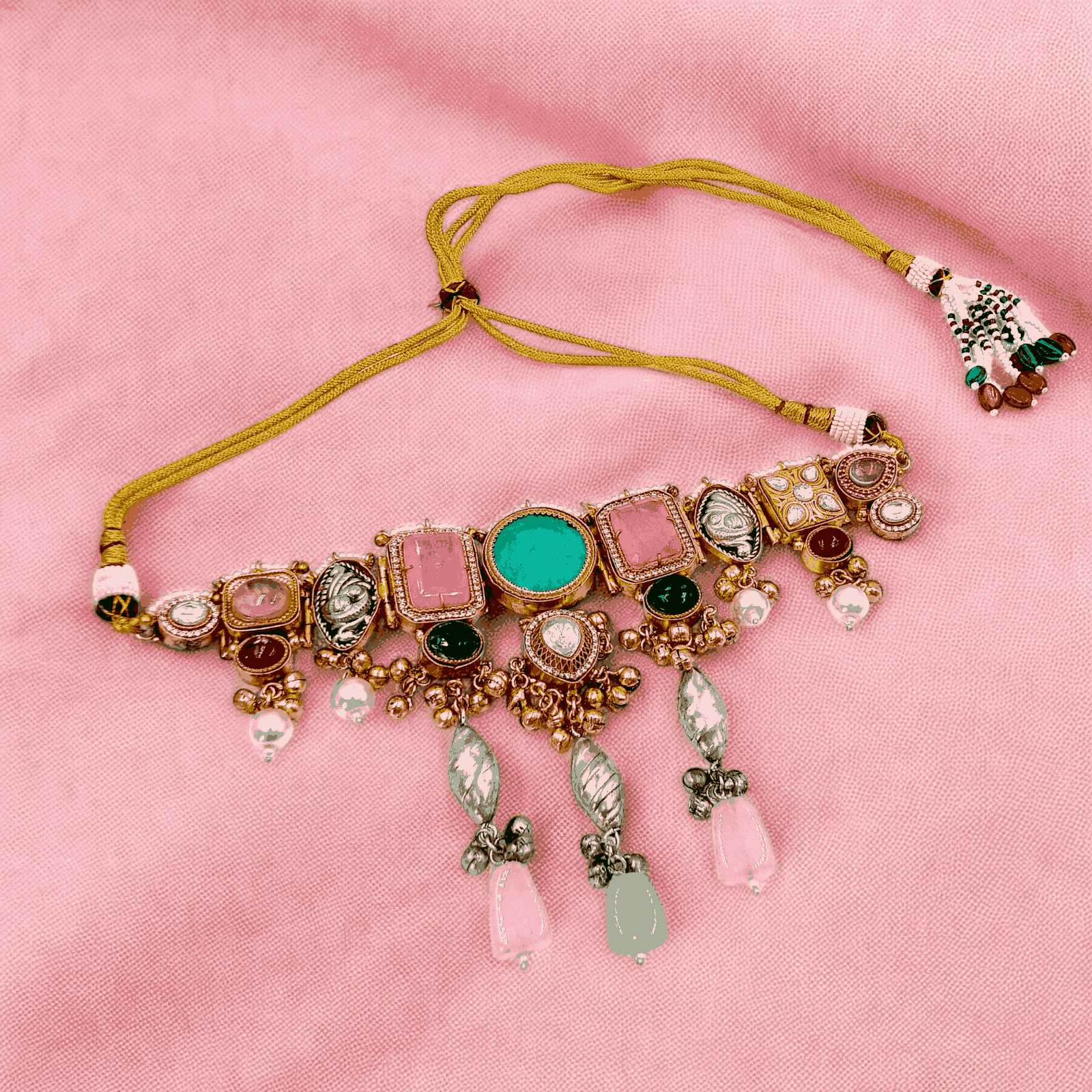 Crafted with oxidised silver finish and colourful embellishments, this choker brings a perfect fusion of traditional and bohemian charm.
