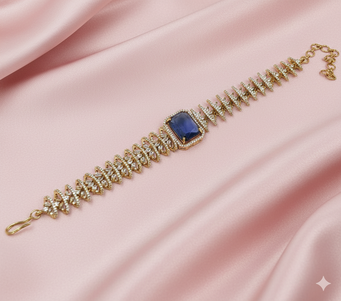 Perfect for weddings, festive occasions, parties, and cultural celebrations, this bracelet pairs effortlessly with sarees, lehengas, and ethnic or fusion ensembles. The luxurious blend of gold, white, and royal-blue tones adds a regal charm, making it an ideal accessory for both daytime elegance and evening glamour.