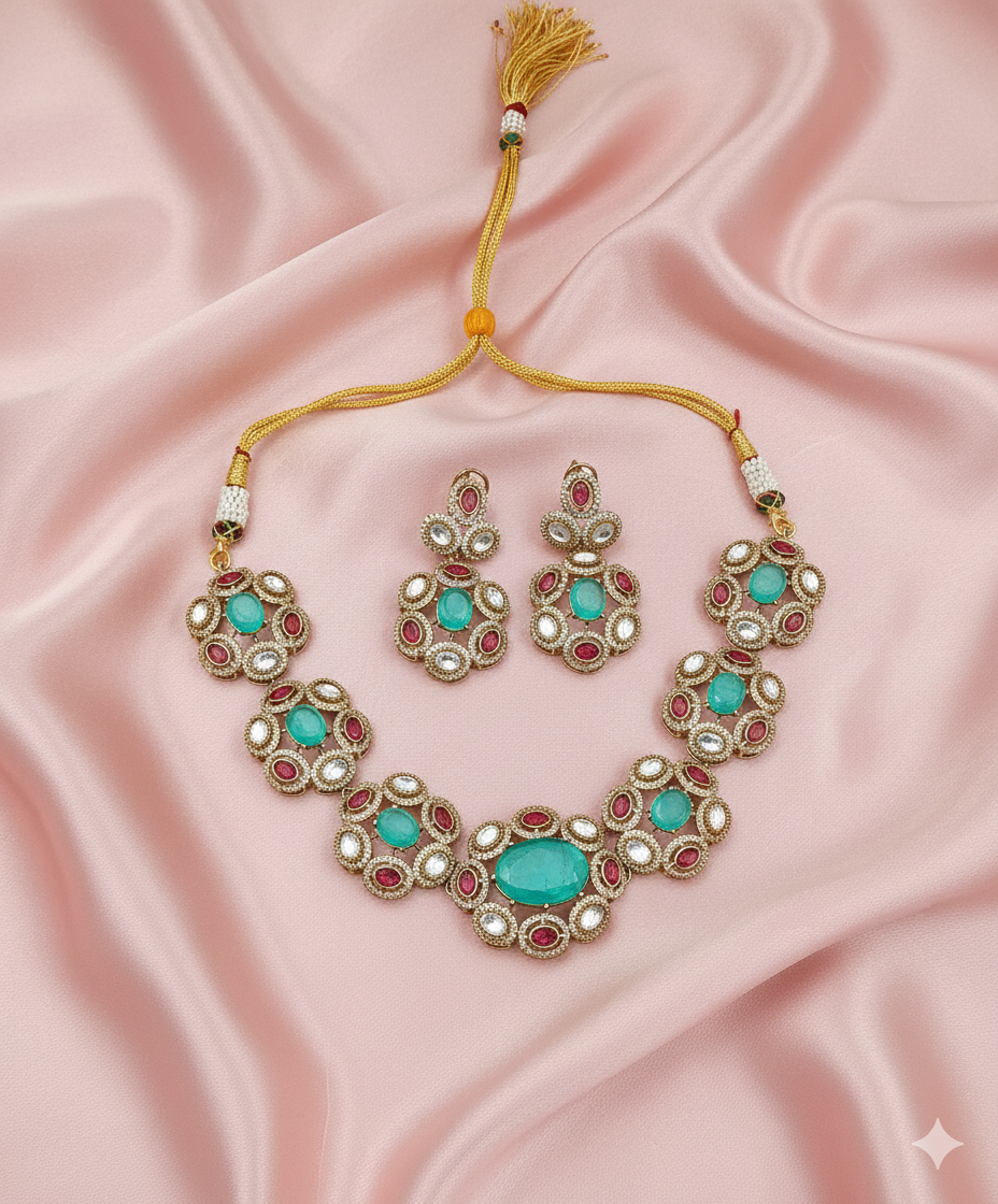 Royal Crimson Ruby Moissanite Polki Necklace Set