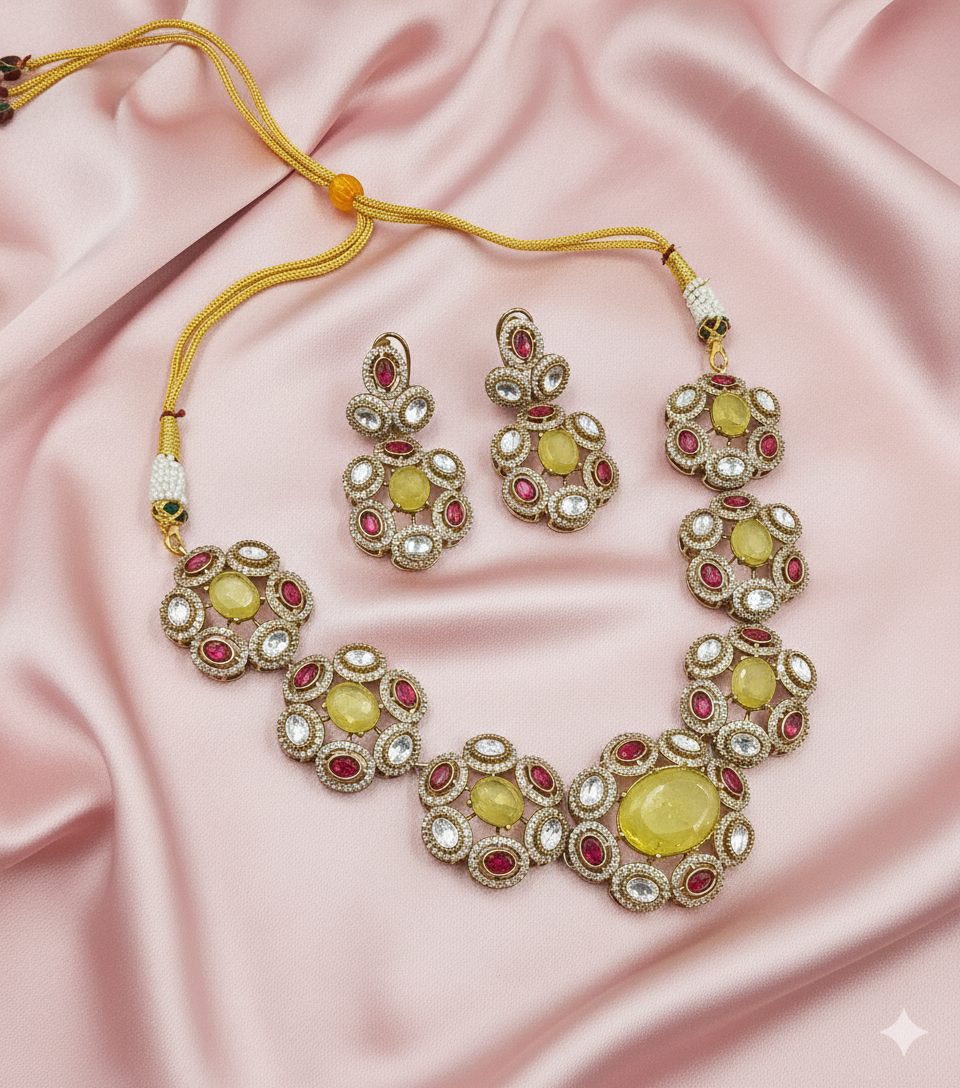 Royal Crimson Ruby & Moissanite Polki Necklace Set