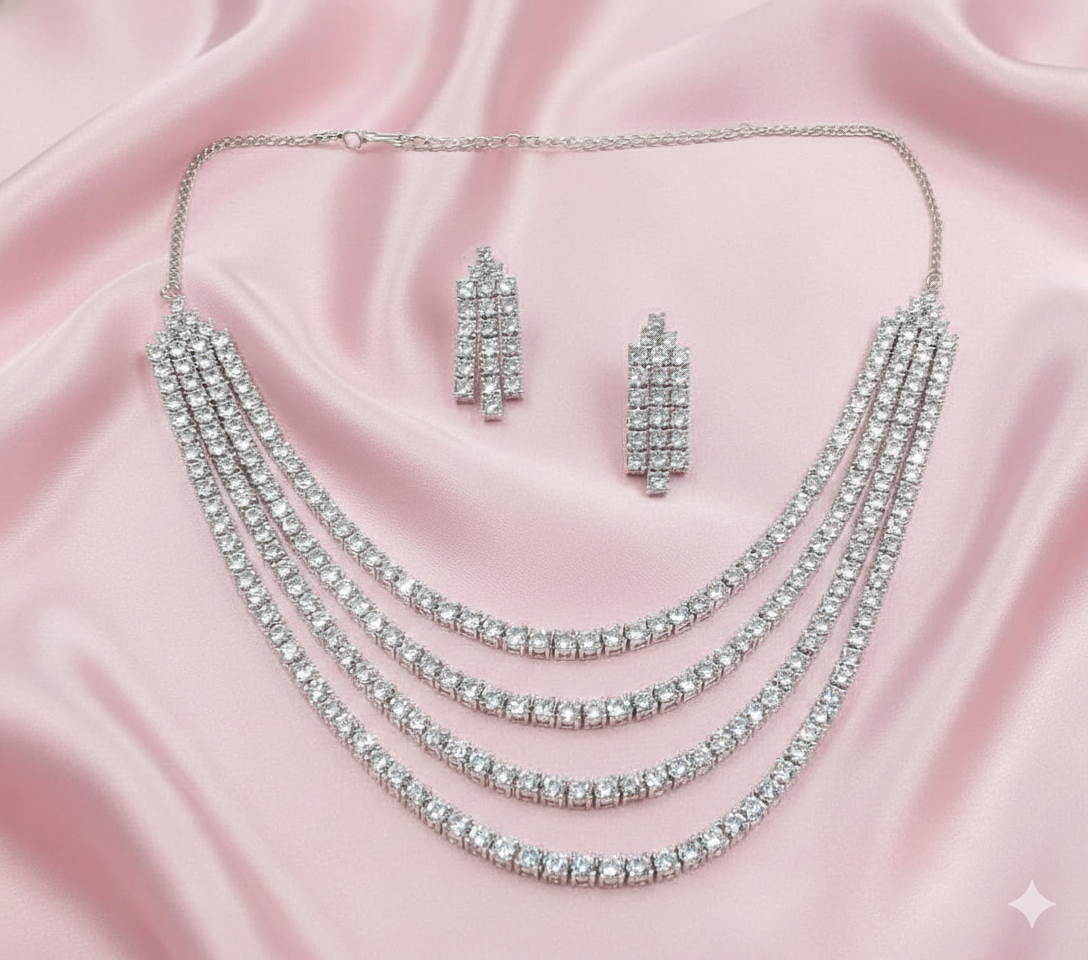 Royal Floral Oval American Diamond Necklace Set