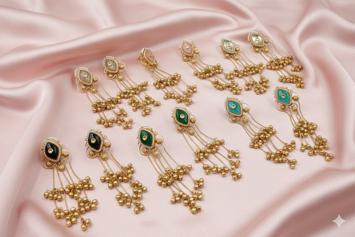 This majestic cocktail ring replicates high-end traditional luxury with an expansive floral cluster design. A polished central gemstone is encircled by alternating petals of Moissanite Polki and gleaming pearls, all set within an intricate gold-plated filigree band.