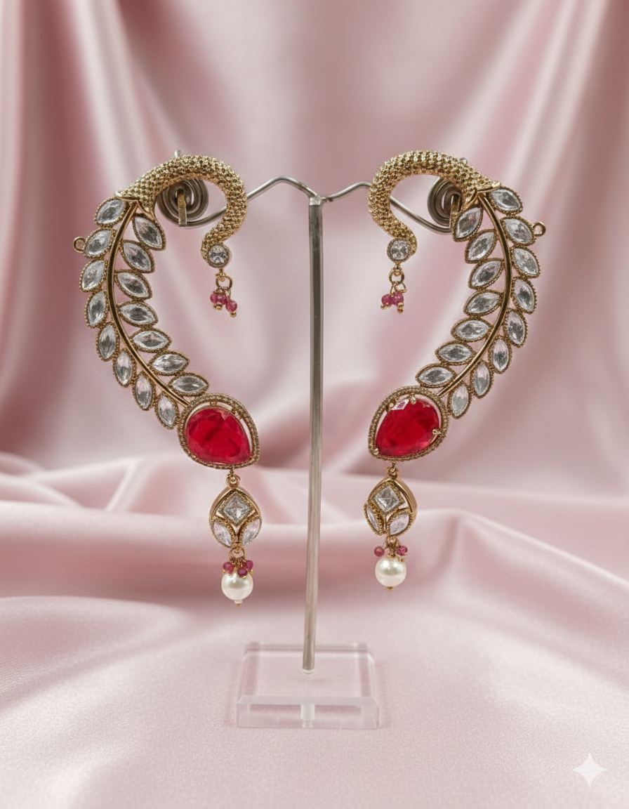 Make a grand entrance with our Royal Plume Moissanite Earcuffs, a breathtaking accessory designed for life’s most celebrated moments. Inspired by the grace of a peacock’s plume, these earcuffs are meticulously crafted with a series of marquise-cut Moissanite stones that lead to a striking pear-shaped focal point.