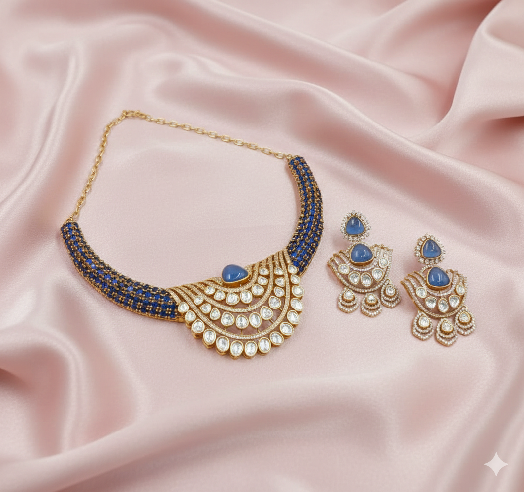 Royal Sapphire Blue Moissanite Hasli Necklace Set