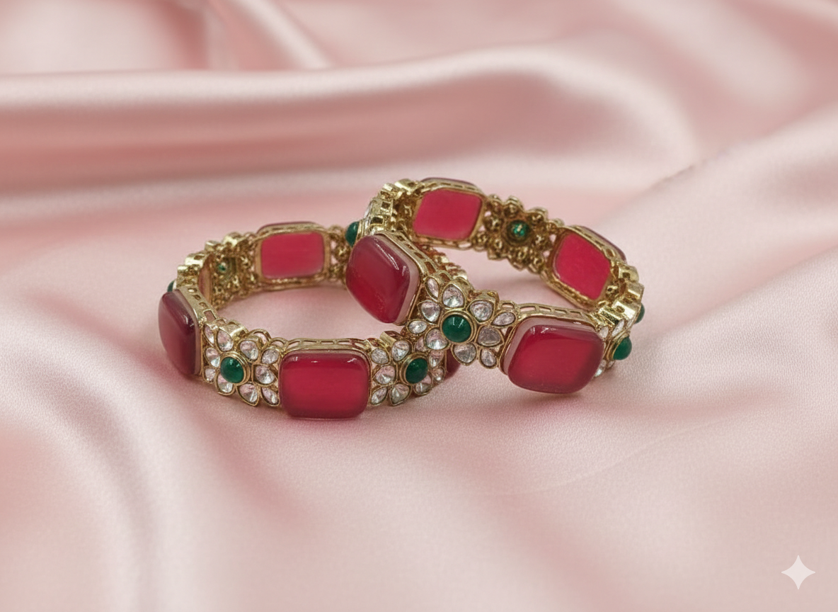 Designed to complement ethnic wear such as sarees, lehengas, and anarkalis, this bangle also elevates fusion outfits effortlessly. A must-have statement piece for those who love rich colours, traditional elegance, and premium sparkle in their jewellery collection.