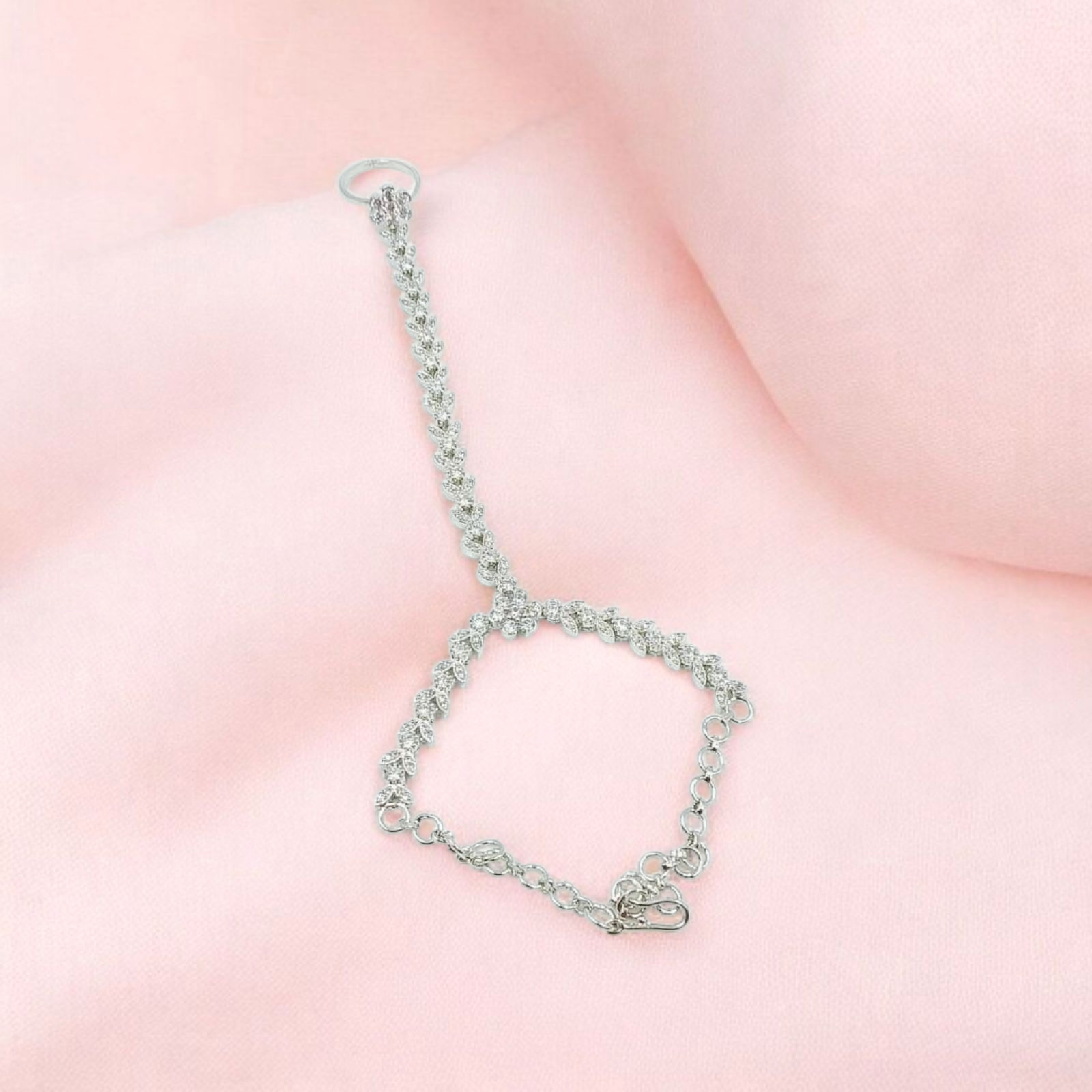 Complete your ethnic look with this White Stone Hathphool from Paramount Jewels. Featuring a delicate blend of traditional artistry and modern elegance, this hand harness is adorned with sparkling white stones for a graceful finish.